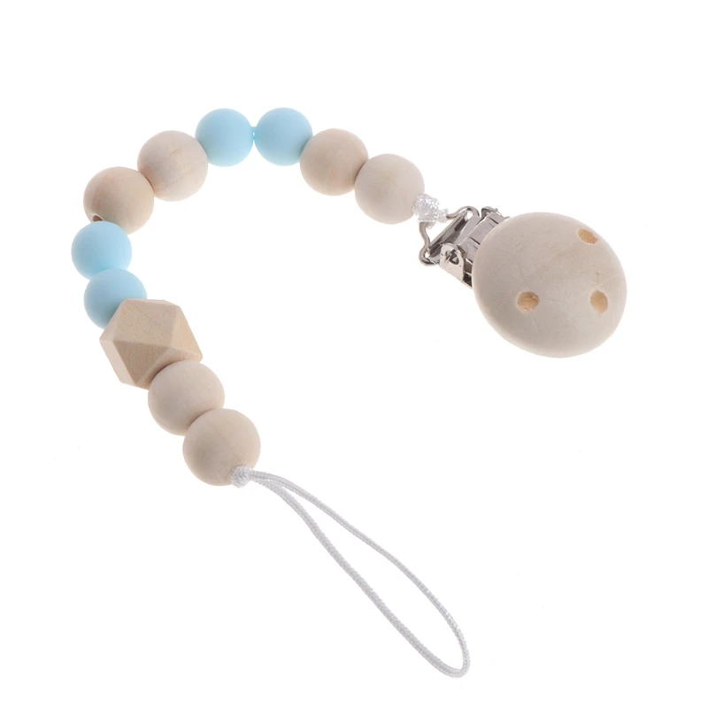 Name: Soporte para pezones con cuentas de madera para bebé, Clip para chupete, cadena, correa para chupete, Clips para chupete