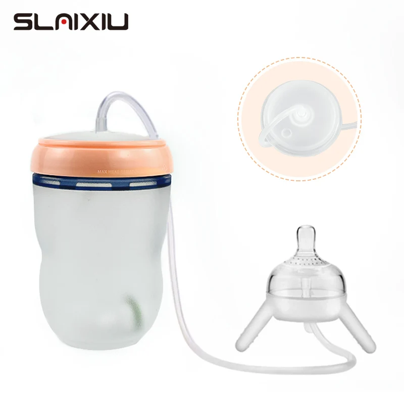 Name: Botella de alimentación de bebé multifuncional para niños, Pajita larga, manos libres, de silicona, sin BPA