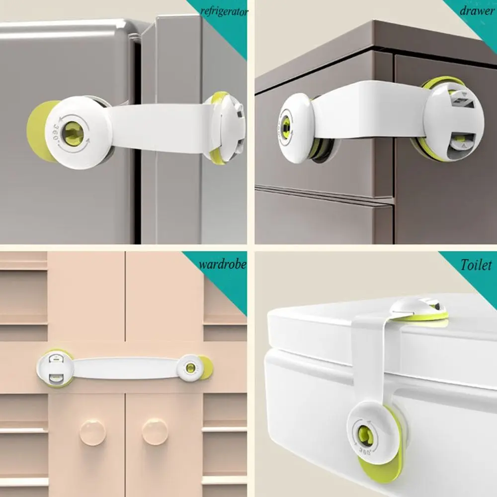 Name: Cerradura multifunción de doble botón para cajón de bebé, cierre antipellizco para puerta de refrigerador, protección de seguridad para niños, candado de inodoro para cajón